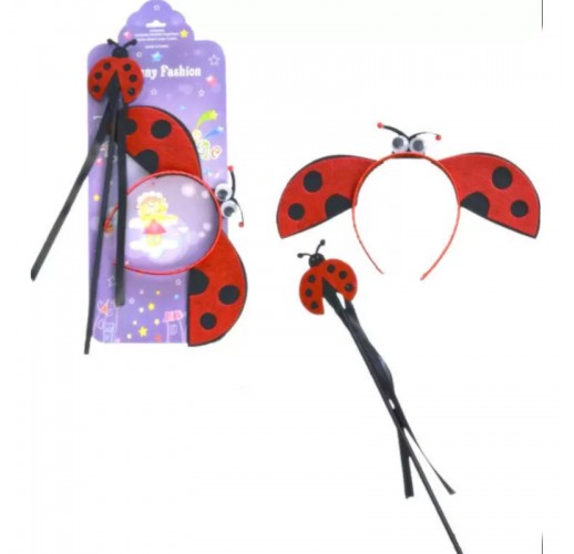 Doplň svůj kostým pro slunéčko sedmitečné příslušenstvím s motivy berušky. Sada obsahuje čelenku a hůlku v černo-červené barvě. Vhodné pro děti od 3 let.