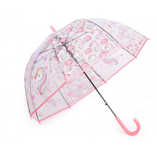 Pevný průhledný potah deštníku s milým potiskem trendy jednorožců je doslova uchvátí.