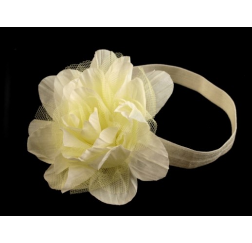Dětská čelenka je pružná, ozdobí vlásky všem děvčátkům. Dominantou je velký textilní květ, který působí něžně. Její obvod v nenataženém stavu je 31 cm, dá se natáhnout na obvod cca 46 cm i více.