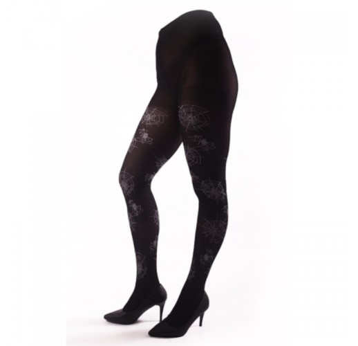 Černé punčocháče s motivem stříbrných pavučinek.