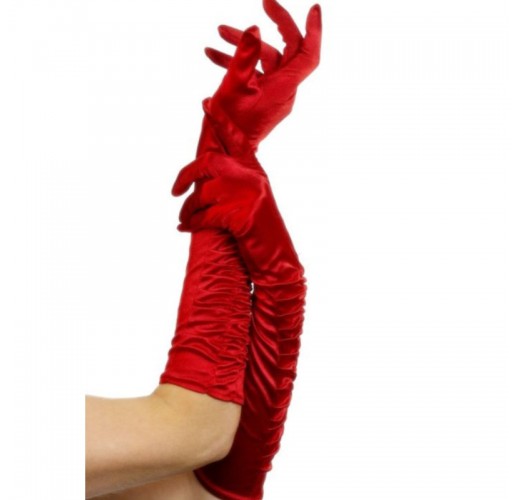Dlouhé červené dámské rukavice, které uplatníte nejen pro čertici či na retro akci.