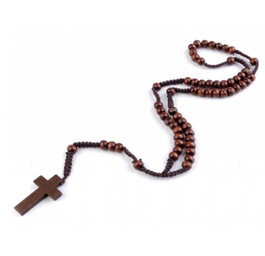 Růženec dřevěný na drhaných šňůrkách hnědý