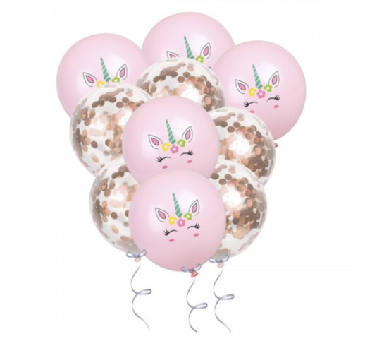 5 je potištěno jednorožci a 5 jsou latexové s konfetami.