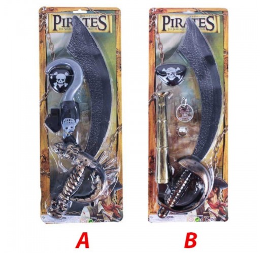 Pirátská sada obsahuje pirátský meč, klapku na oko, hák a píšťalku (typ A), nebo meč, klapku, naušnici a prsten (typ B).
