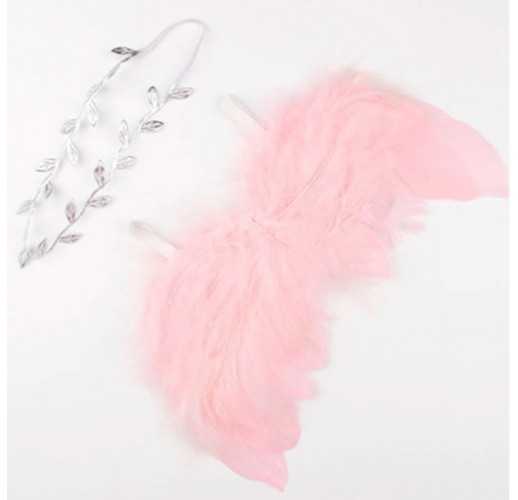 Sada pro miminko křidýlka na focení růžové s stříbrnými větvičkami (c13)