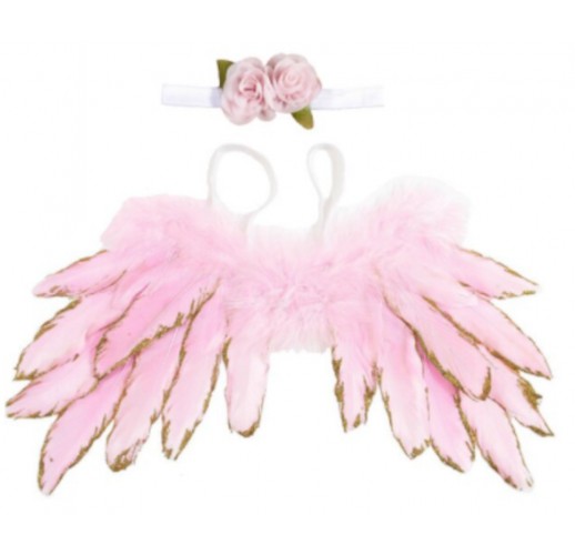Sada pro miminko křidýlka na focení růžový se zlatým lemem č.20