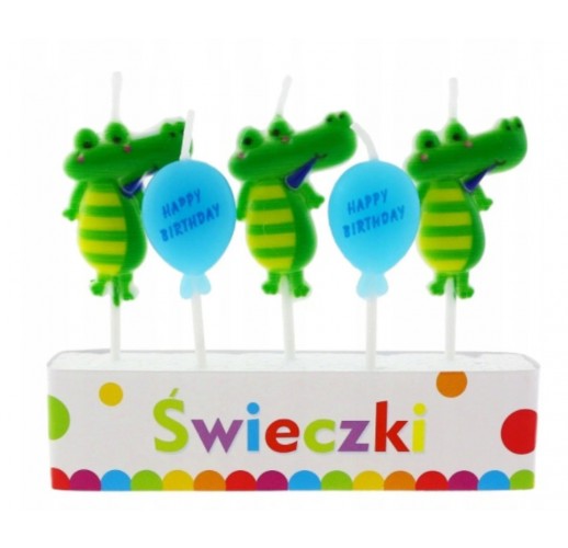 Sadu tvoří 2ks svíček znázorňujících balonek a 3 ks svíček představujících krokodýla.