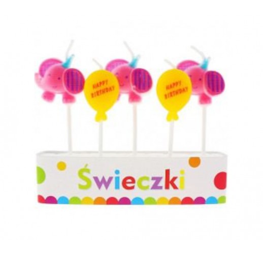 Sadu tvoří 2 ks svíček znázorňujících žlutý balonky a 3 ks svíček představujících růžové slony.