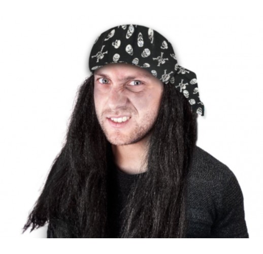 Stylový pirátský šátek v černé barvě s potiskem bílých lebek má rozměr cca 53 x 53 cm.