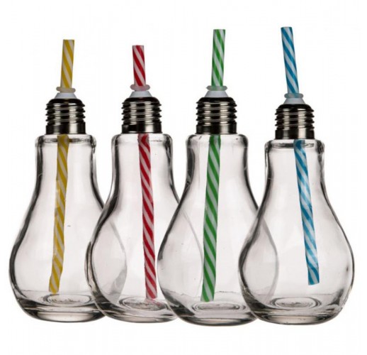 Netradiční sklenice s brčkem ve tvaru žárovek zaujmou pozornost. Sklenice jsou ideální na doma i na ven. Můžete si v nich připravit džus, limonády, smoothie a různé další nápoje vhodné i pro děti. Sklenice obsahuje barevné brčko a šroubovací víčko, aby se nápoj nerozlil. Krásné retro sklenice svým vzhledem opravdu připomínají žárovky. Sklenice s brčkem žárovka 250 ml jsou originálním dárkem k podávání nápojů.