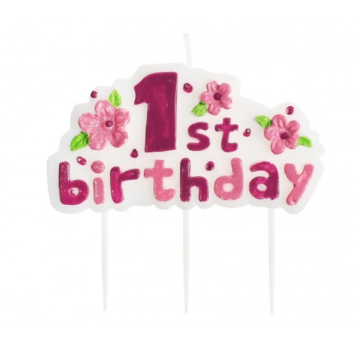 Narozeninová svíčka Moje 1. narozeniny růžová.
