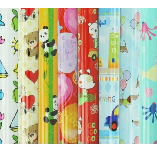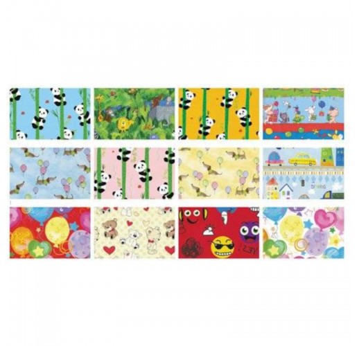 Ozdobný dárkový balicí papír s dětskými motivy.