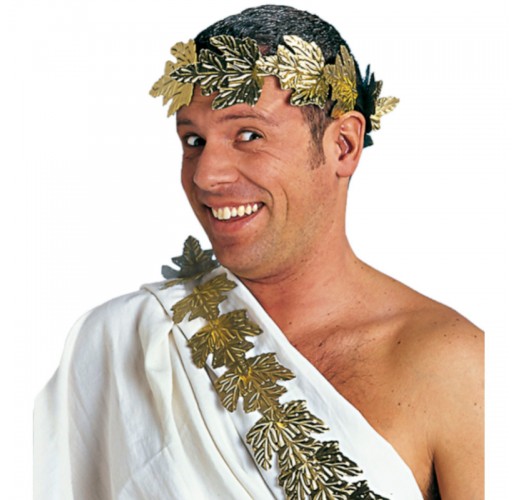 Vavřínový věnec, plastový, zlatá barva, šířka 8 cm.