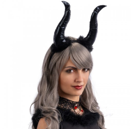 Čelenka s rohy a chloupky, doplněk pro dospělé, ideální pro dotvoření kostýmu čerta.