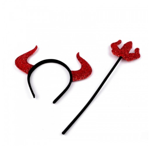 S karnevalovou sadou se proměníte v čerta či čertici. Sada obsahuje čelenku s rohy a čertovské žezlo. Díky lesklým lamelám v červeném textilním potahu se jemně třpytí.