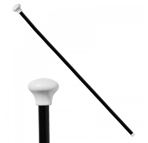 Hůlka černá s bílou koncovkou,ve stylu 20´let, 81 cm, koncovka vydává zvuk.