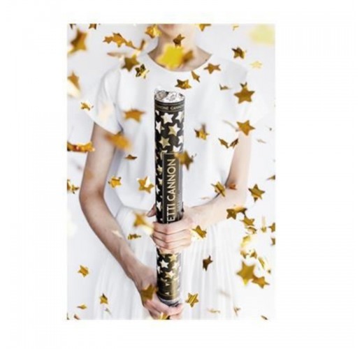 Vystřelovací konfety 60cm - po zatočení spodní části vyletí z tubusu velké množství fóliových konfet ve tvaru hvězdiček.